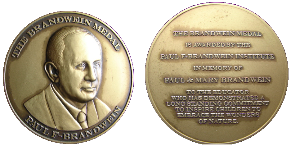 The Brandwein Medal, established in 2006, is bestowed upon individuals and/or organizations whose focus is in keeping with Paul and Mary Brandwein’s commitment to education, life-long learning, nature, and community. The awardee receives a Bronze Medallion engraved with the likeness of Paul Brandwein and a $1000 prize.
