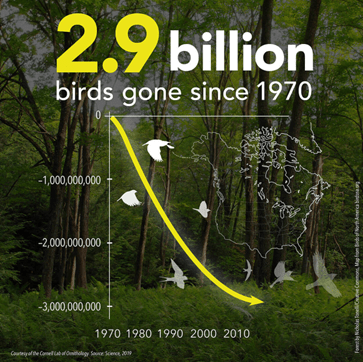 The total population of birds in North America has decreased by 2.9 billion (29%) in just 50 years (United Nations)