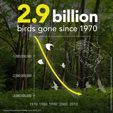 The total population of birds in North America has decreased by 2.9 billion (29%) in just 50 years (United Nations)