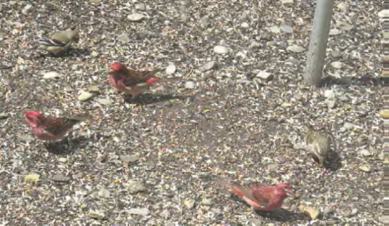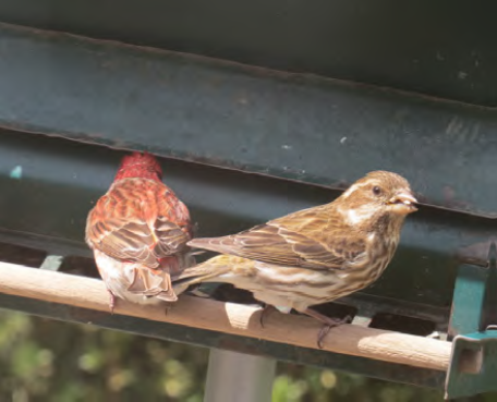 The last week in March we had a lone male Purple Finch and then a lone female this past week. Today, 4/5 we had a mini flight of them with six males and a single female. We had two Eastern Bluebirds calling in the backyard and then a male flew into the top of the front Cherry tree and they called back and forth for several minutes. The tree is about six feet away from where Don put up the Bluebird box that Charlie Fineran built and I was awarded at the bird club March meeting. Fingers crossed that they use it this year.